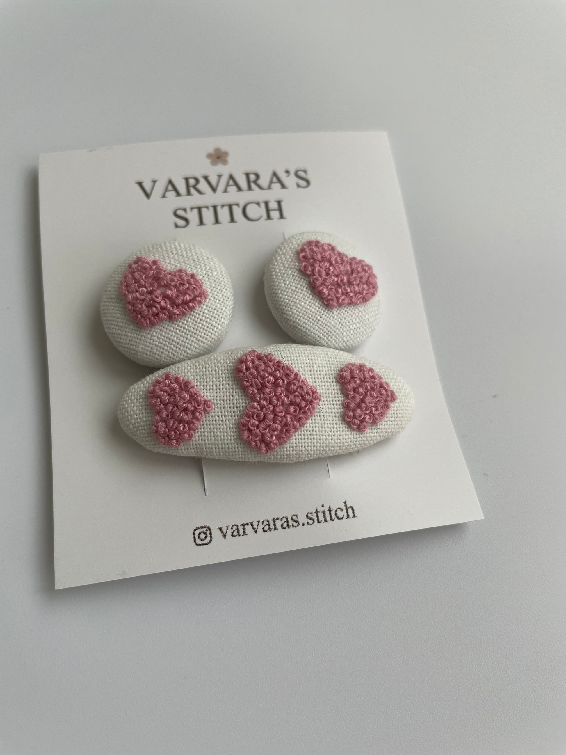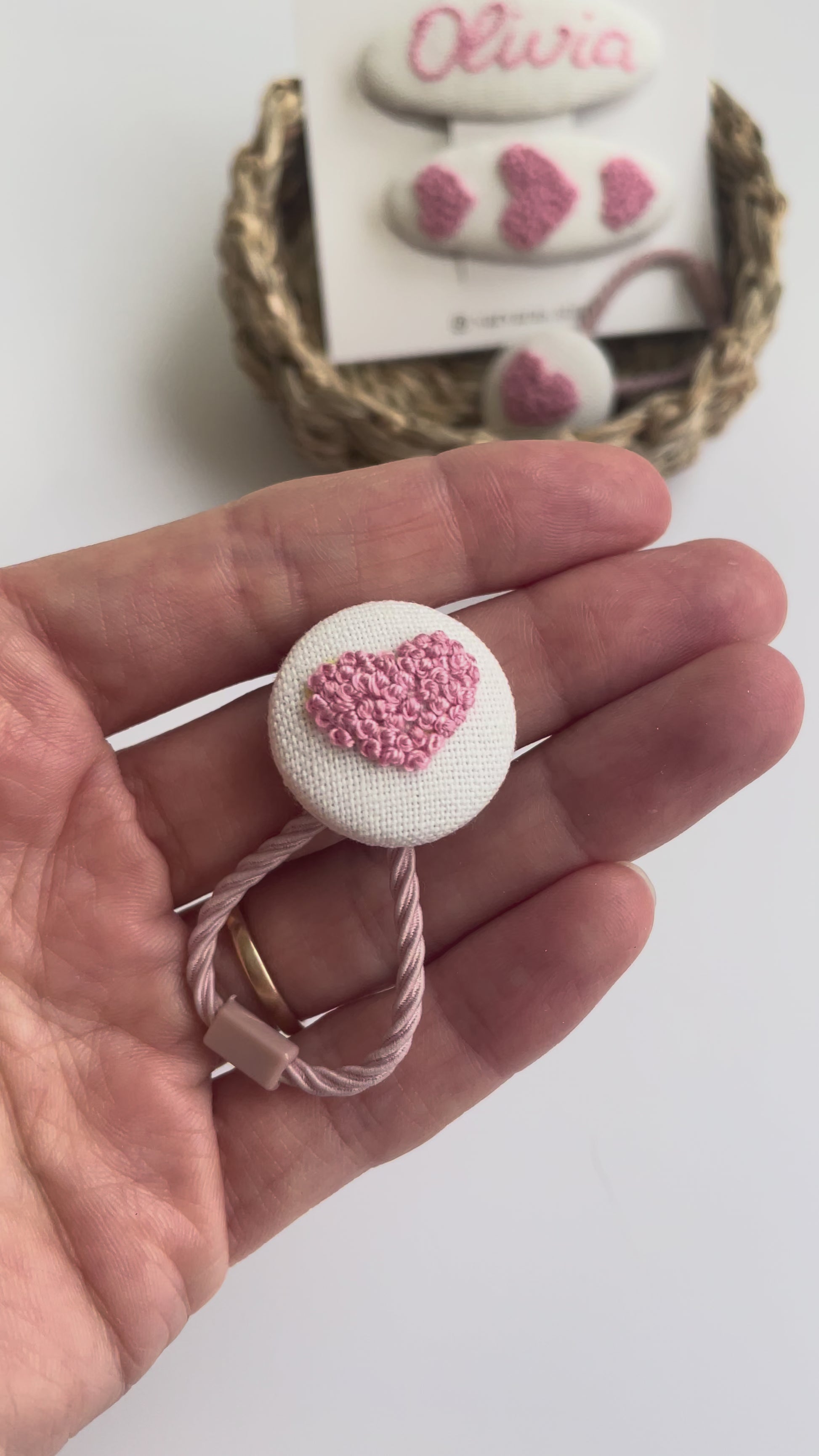 and customized with your child’s name. A beautiful linen hair clips and ties set