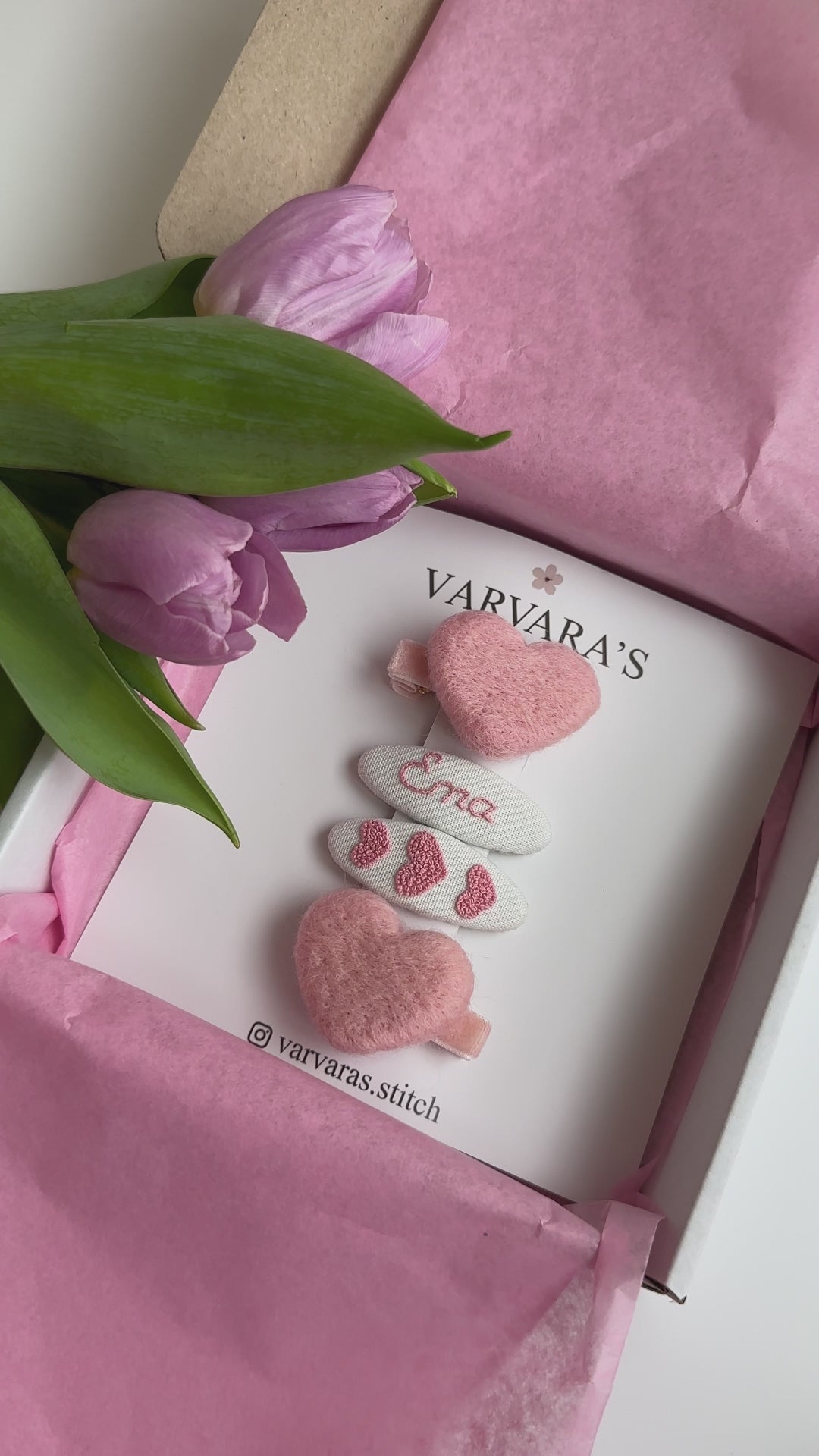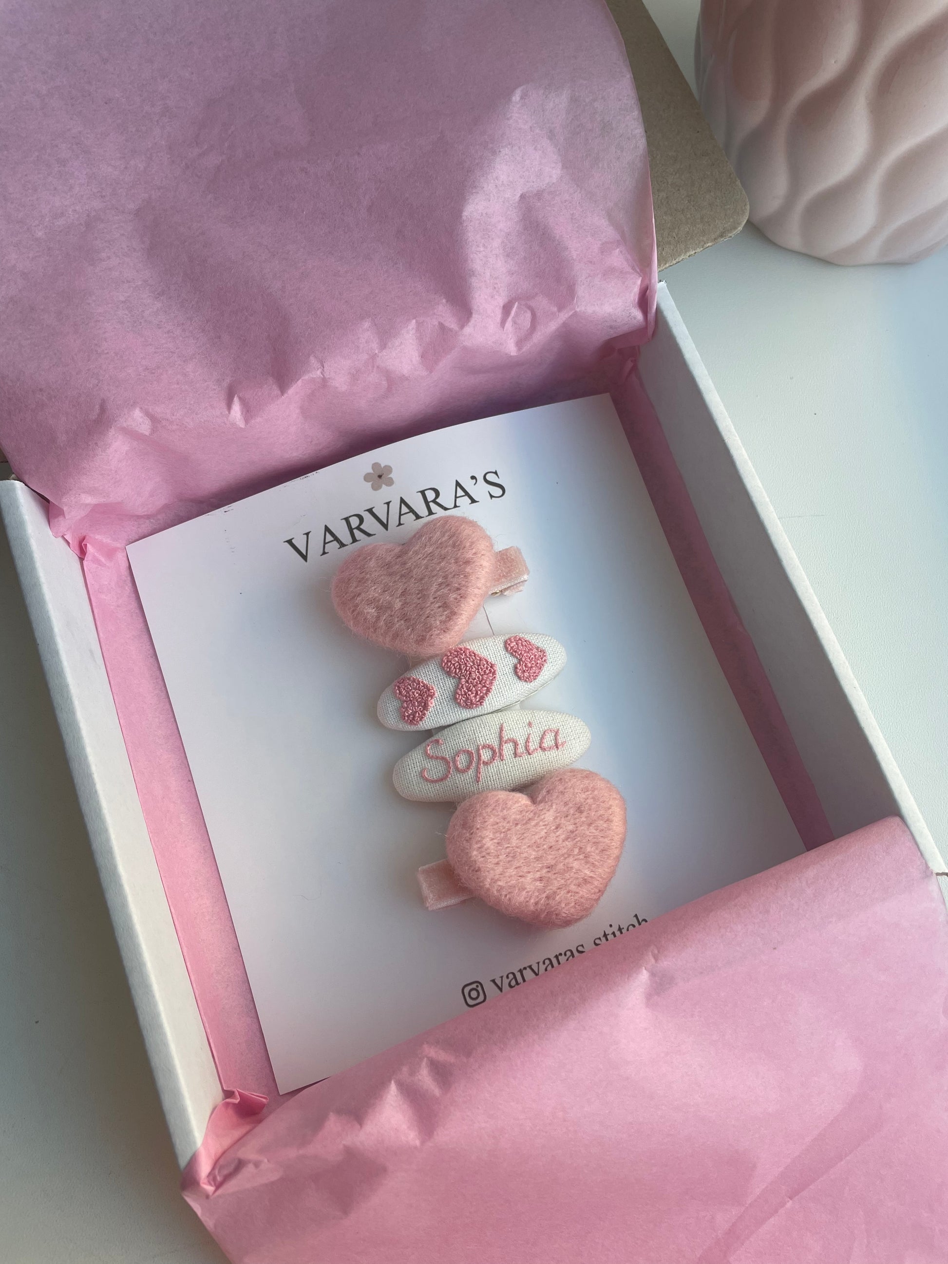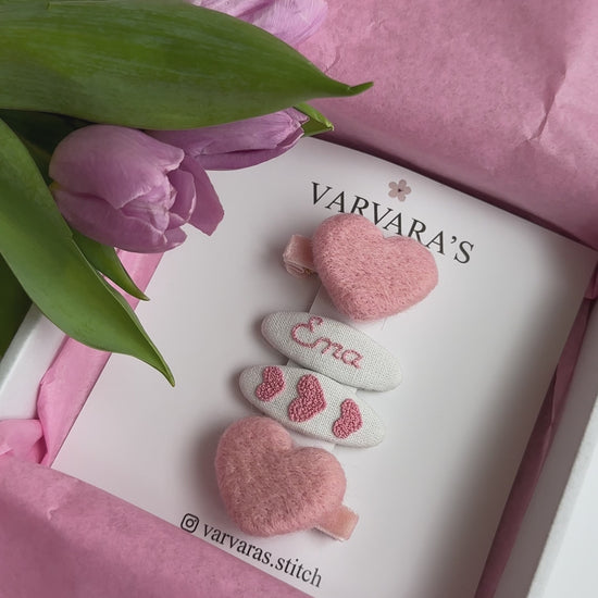 Personalized Hair Clip Set with Name – Linen & Cotton Heart Clips (4 pcs) 🚚 Free shipping