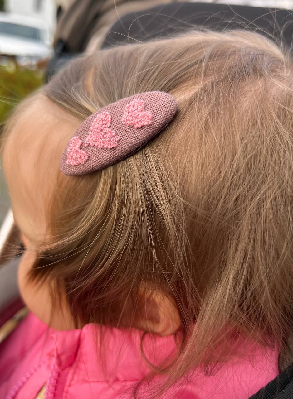Looking for the sweetest touch for your little oneβs outfit? π These pink heart embroidered hair clips are handmade from soft linen and finished with love. Perfect for birthdays, school days, or just playful everyday magic β¨.